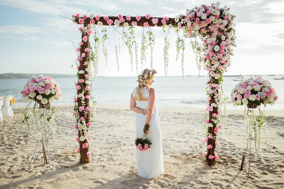 Měsíc před svatbou přišla zpráva od přátel, že zvažují svatbu mimo republiku a že by se jim líbilo mít ji na Bali. Sháněly jsme informace o tom jak to tady funguje, co je třeba pro právoplatný sňatek zařídit, kolik taková svatba na pláži vyjde a jiné. Zjistily jsme, že zařídit oficiální svatbu není až tak narychlo možné. Vyřízení papírů, podplacení úředníku a získání potřebných povolení je poměrně zdlouhavé a také nákladné. A tak nejjednodušší cesta je obřad formou slibu.